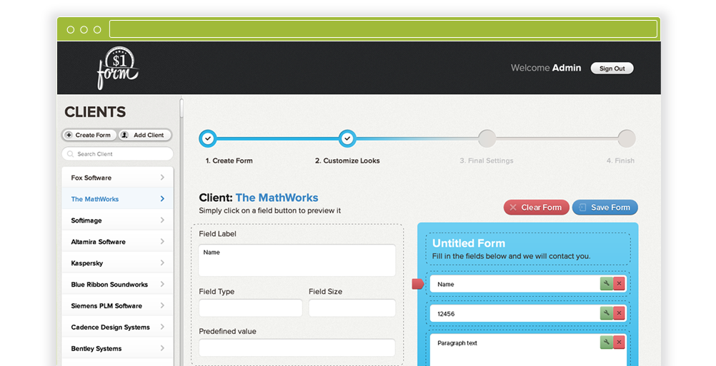 $1 FORM provides the perfect simplest tools for anyone to easily drag and drop a perfect form in a matter of minutes.